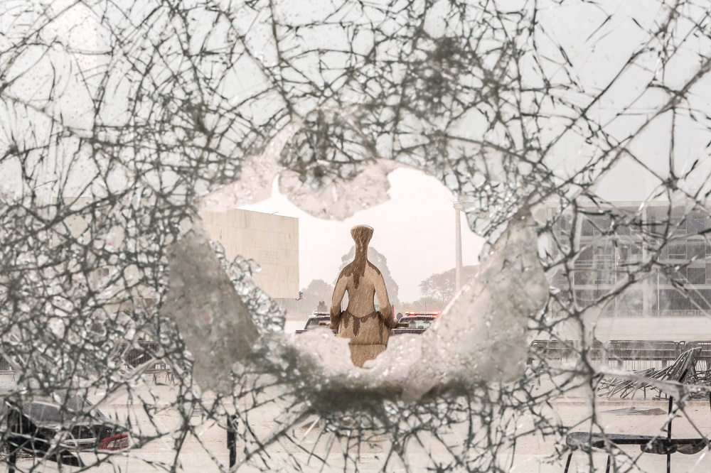 Prédio do STF após atos de vandalismo do dia 8 de janeiro. Edifício sede do Supremo Tribunal F...